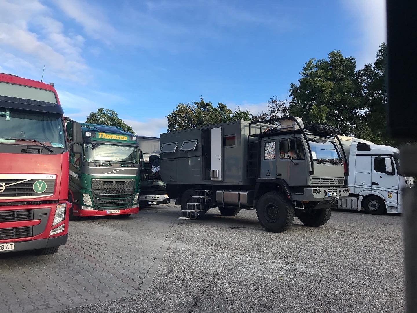 Es gibt Schlüsselmomente, von denen man später weiß, sie haben alles verändert. In unserem Fall war das die Versteigerung eines alten Militär-Jeeps. Plötzlich war er wieder da, der Traum vom unabhängigen Reisen. Wenige Monate später nannten wir einen Steyr 12M18 unser eigen. Etwas größer als ein Jeep, zugegeben, doch nicht weniger rustikal. Wie es dazu kam und wie aus unserem alten Militär-LKW ein reisefertiges Fahrzeug für fünf Leute wird, möchten wir hier in unserem Blog noch genauer vorstellen. Wieso ein Expeditionsmobil? "Da machen wir mit", waren wir uns einig, als uns im Frühjahr 2019 die Nachricht von der Versteigerung eines "Wolfs" erreichte. Immer wieder hatten wir in der Vergangenheit unsere Grenzen des Reisens ausgelotet, waren mit kleinen KIndern und Rucksäcken abseits touristischer Pfade durch Asien und Mittelamerika getourt oder mit den Fahrrädern an der Donau entlang. Auch zwei Motorräder oder unser VW-Bus dienten uns schon als Basis für verschiedene Reisen durch Europa. Wenn uns unterwegs besondere Reise-Mobile begegneten, verrenkten wir uns alle die Hälse. Und nun schien die Möglichkeit zum Greifen nah, in eine neue Dimension des Abenteuer-Reisens einzutreten. Doch die anfängliche Euphorie wurde schnell wieder gebremst: Wie sollten wir zu fünft mit Gepäck, Wasser- und Spritvorräten in den Jeep passen, ohne das Fahrzeug vollkommen zu überladen? Minimalistisches Reisen sind wir zwar gewöhnt, doch um autark in der Wildnis unterwegs zu sein und dabei größere Strecken zurück zu legen, braucht es eben doch etwas mehr als einen Mini-Campingkocher und Schlafsäcke. Vom Jeep zum LKW Schritt für Schritt wuchs unsere Idee also vom Jeep über einen 4x4-Bus hin zu einem richtigen LKW. Wir klickten uns durchs Netz, entdeckten plötzlich überall Expeditionsfahrzeuge, sprachen mit deren Eigentümer und besuchten die Adventure Southside im badischen Eigeltingen. Und wieder mussten wir uns von einer Idee verabschieden: davon, einen "kleinen" Lastwagen mit unter 7,5 Tonnen auszubauen. Was für zwei Personen und den entsprechenden Geldbeutel für extremen Leichtbau vielleicht noch gehen mag, sagten uns Experten, ist für unsere Planung einer Familienkutsche unmöglich. Apropos Geldbeutel: Was Expeditionsmobile angeht, mussten wir schnell feststellen, sind finanziell nach oben keine Grenzen gesetzt. Bei unseren Möglichkeiten dagegen schon. Für uns war klar, dass wir uns keinen fertig ausgebauten LKW leisten konnten und wollten. Wir hatten die Vorstellung, einigen Vorbildern im Netz folgend, einen alten LKW von grundauf auf- und umzubauen und so schauten wir uns nach ausgemusterten Feuerwehr-Fahrzeugen um. Einige Besichtigungen und Probefahrten später mussten wir uns eingestehen, dass unsere Kenntnisse von LKW-Technik nicht ausreichten, um ein Fahrzeug in annehmbarer Zeit komplett zu restaurieren, zumal die Fahrerhäuser alle einem größeren Umbau bedurften, um fünf vollwertige Sitze einbauen zu können. Die Standard-Größe hätte hinten aufgeschnitten und verlängert werden müssen, die Doppelkabine einer Feuerwehr war dagegen schon wieder zu groß, um unter Berücksichtigung der Gesamtgröße noch eine vernünftige Wohnkabine dahinter bauen zu können. Fernreise-Kabinen waren für unsere Körpergröße zu klein. Und die vierte Variante der kurzen Doppelkabine entpuppte sich als echte Rarität. Also schauten wir uns nach Anbietern um, die das Grundfahrzeug in einem für uns passenden Rahmen anboten. Der Markt in diesem Bereich ist sehr übersichtlich. Letztlich fiel die Entscheidung zwischen zwei Unternehmen bzw. einem Iveco Magirus 120-19 und einem Steyr 12M18. Faktoren waren der Fahrkomfort, wie die Geräuschkulisse und der Platz im Fahrerhaus, sowie der voraussichtliche Spritverbrauch. Auch die leichtere Fahrzeugbedienung mit Details wie einem kleinen Wendekreis sowie die Optik und das Gesamtkonzept des Anbieters ließen die Nadel schließlich in Richtung des Steyrs ausschlagen. Zugegeben, wir waren bereits nach der ersten Probefahrt verliebt. Als nächstes musste eine passende Kabine gefunden werden. Aufgrund von Toralfs Körpergröße von zwei Metern fielen auch hier die günstigen Möglichkeiten aus, einen Zeppelinshelter oder ähnliches auf den LKW zu setzen. Aufgrund der Bauhöhe von 1,95 Meter hätte Toralf dort nie aufrecht stehen können. Von Selbstbau-Kabinen nahmen wir aufgrund unserer technischen und zeitlichen Möglichkeiten Abstand und entschieden uns deshalb schließlich für eine GFK-Kabine nach unseren Maßen. Ja, finanziell hatten wir uns das etwas anders vorgestellt...